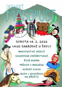OKENSKÝ MASOPUST – SOBOTA 14.2.2026 – ZAHÁJENÍ U ŠKOLY VE 14 HODIN